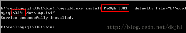 .\mysqld.exe install MySQL-3380 --defaults-file="E:\cool\mysql\3380\data\my.ini"