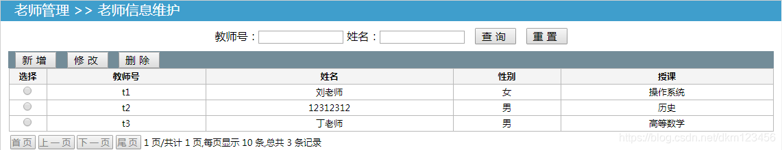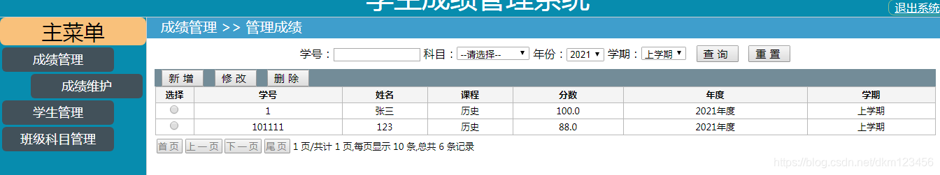 老师查询到自己授课内,所有人的成绩,可以添加、修改、删除成绩。
