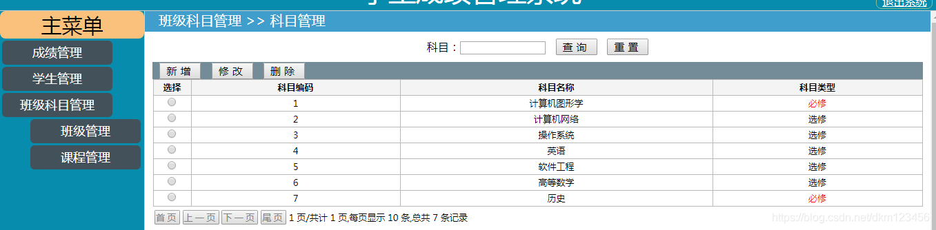以学生成绩作为主题,辅以班级、学生、老师、课程、选课等管理模块(当然因为是做实例,也没有把所有的模块都涉及到)。