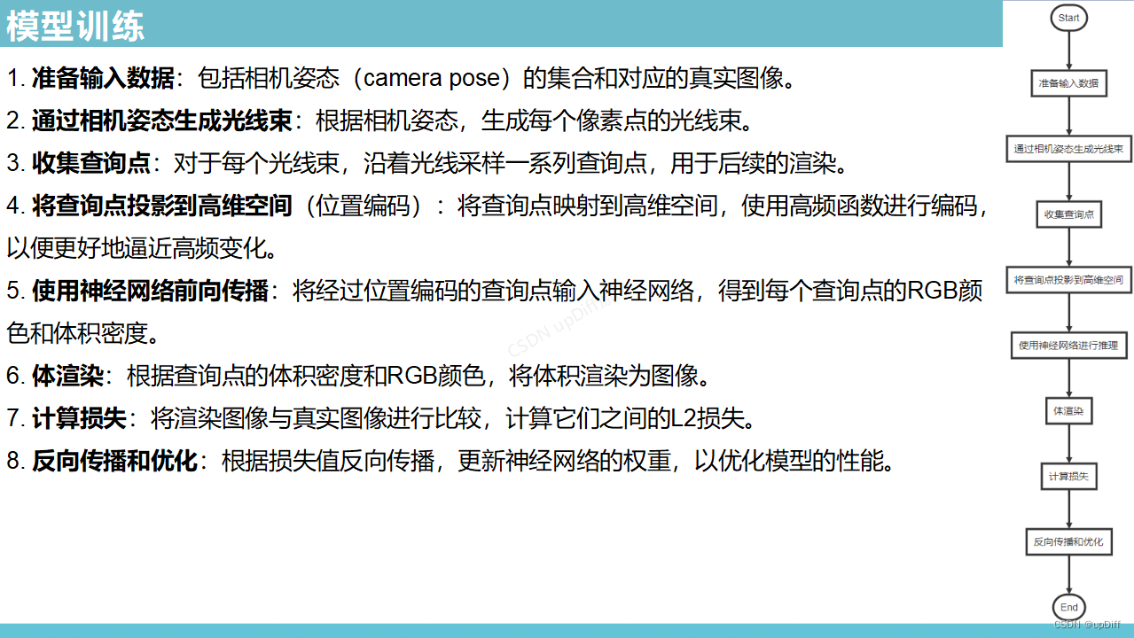 1-模型训练全流程: 详细介绍NeRF模型的训练流程,包括数据准备、损失函数和优化算法等
