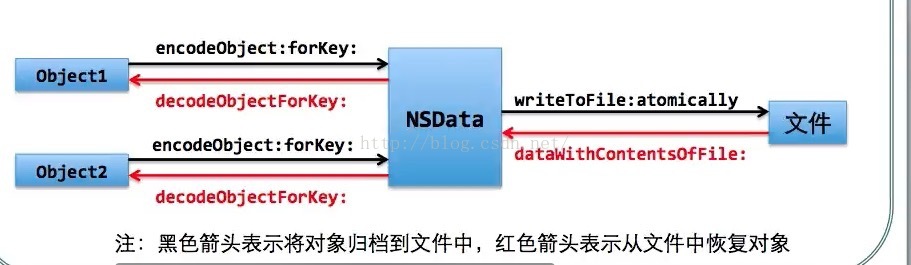 它的具体功能是把遵守NSCoding协议的复杂类对象编码后放到一块NSMutableData里。然后我们把NSMutableData写入文件,完成数据的存储。