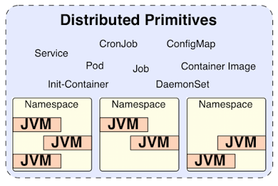 进程内原语和分布式原语具有共同点,但不能直接比较和替换。 它们以不同的抽象级别运行,具有不同的前提条件和保证。 某些原语应该一起使用,例如,我们仍然必须使用类来创建对象并将它们放入容器图像中。 但是其他一些原语(例如Kubernetes中的CronJob)可以完全替代Java中的ExecutorService行为。 我在JVM和Kubernetes中找到了一些共同点,但这里不再赘述。