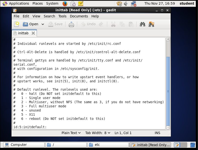 此过程涉及名为inittab(初始化表inittable)的运行级配置文件,路径位于etc目录中,etc目录中存放的都是linux系统配置相关文件: