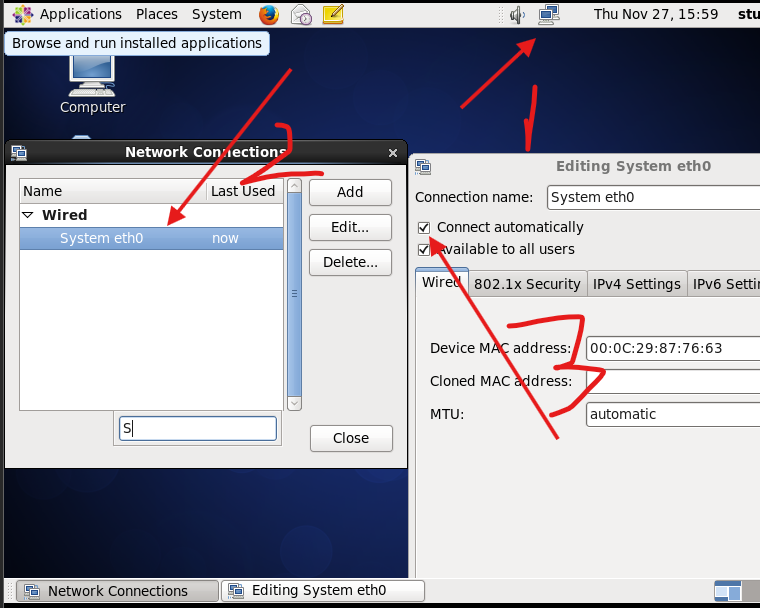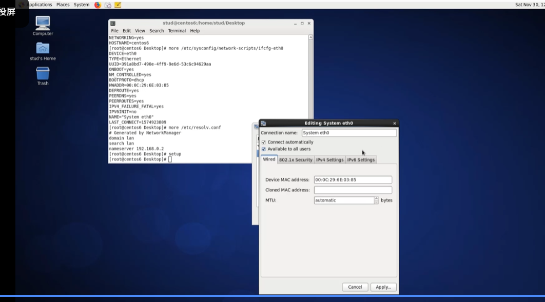 当网络相关配置修改,需要重启网络服务命令进行修改:![]()
