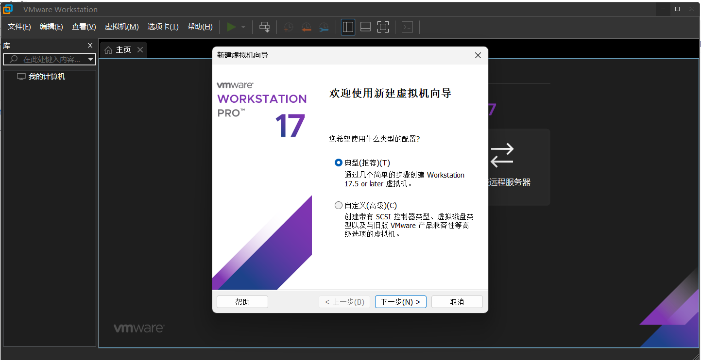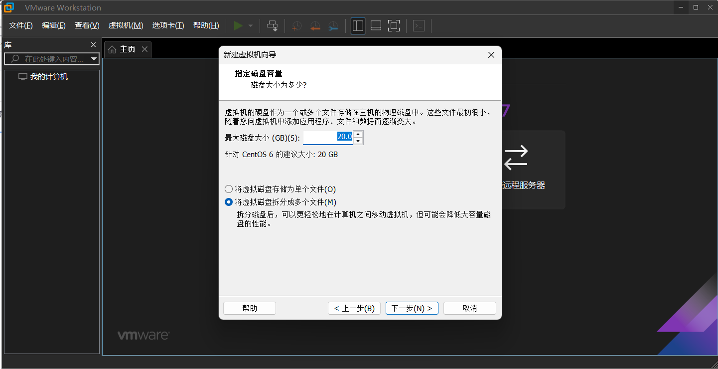 1.打开我们已经下载好的VMwareStation,新建虚拟机,相关设置根据图片一步一步来(图片没有的就是默认设置):