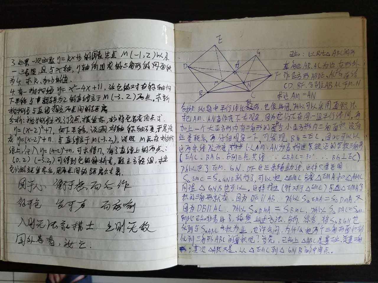到了高中的时候,我获得了省里的数学竞赛和物理竞赛奖项,自然看我这些本子的人就更多了,我写的也更有动力了,晚上下课回家,我就伏案写作,把当日解决的难题怪题写出来,第二天就可以讲了。那个时候问我数学问题,物理题的超级多,其中最重要的,就是我现在的老婆(当然,她最了解我,就是她帮我注册的这个博客)...看到了吧,分享的收益不是加薪,升职,跳槽,而是老婆!