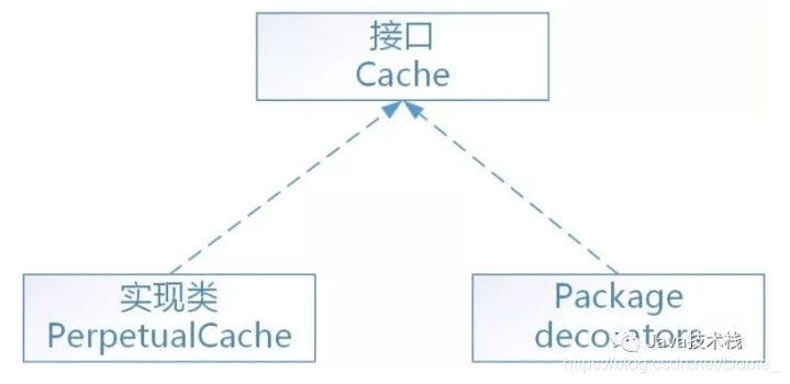 整个体系采用装饰器设计模式,数据存储和缓存的基本功能由PerpetualCache(org.apache.ibatis.cache.impl.PerpetualCache)永久缓存实现,然后通过一系列的装饰器来对PerpetualCache永久缓存进行缓存策略等方便的控制。如下图: