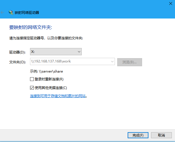 选择 【使用其他凭据连接】,然后输入自己在 ubuntu 系统下创建的 samba 账号和密码。