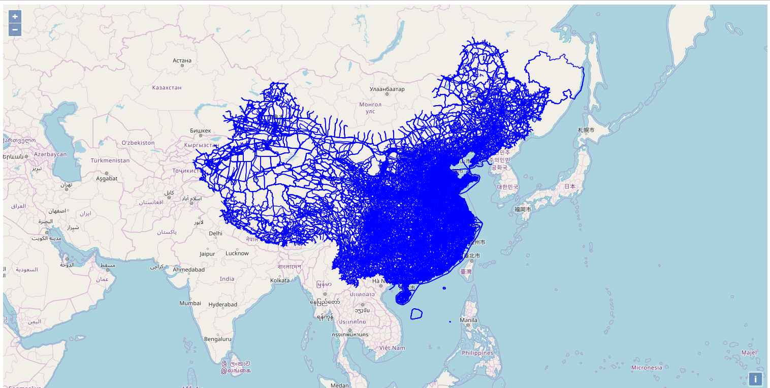 整体效果,open Street map 中 中国的数据没有台湾和藏南