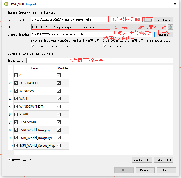 (3)导入配置填写如图,我的图层取名为“EPSG:900913room”.