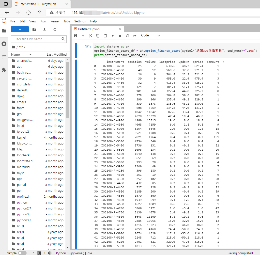 量化交易开源网站 开源财经数据接口库:https://www.akshare.xyz/zh_CN/latest/introduction.html环境配置:https://www.akshare.xyz/zh_CN/latest/anaconda.html通过docker快速安装部署,过程如下:界面效果如下:太方便了,今天先立个flag,明天继续。...