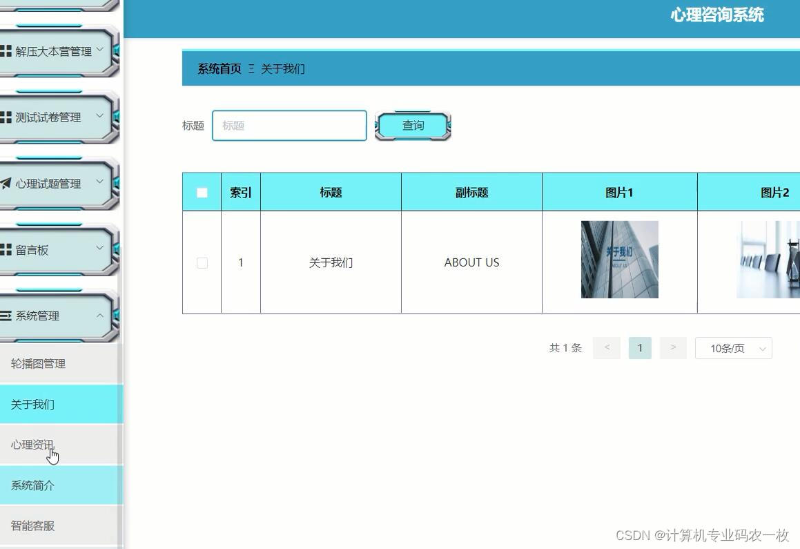 开发软件:PyCharm 本文首先实现了心理咨询的发展,随后依照传统的软件开发流程,最先为系统挑选适用的言语和软件开发平台,依据需求分析开展控制模块制作和数据库查询构造设计,依据系统整体功能模块的设计,制作系统的功能模块图、流程表和E-R图。其次进行设计框架,依据设计的框架撰写编码,完成系统的每个功能模块。最终,对基本系统开展了检测,包含软件性能测试、单元测试和性能指标。测试结果表明,该系统能够实现所需的功能,运行状况尚可并无明显缺点。