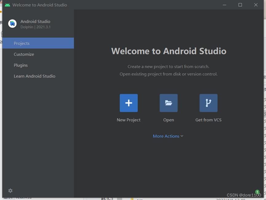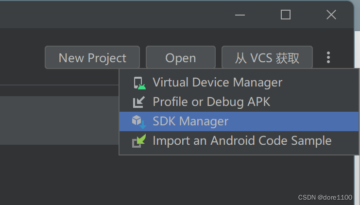 进入欢迎界面后,点击more actions中的SDK Manager