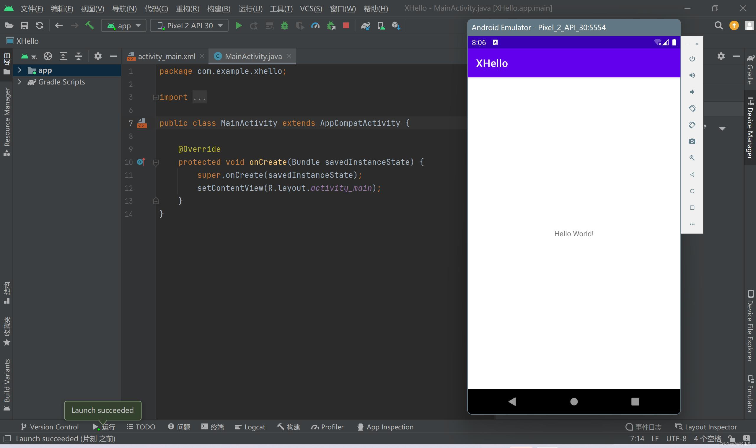 运行程序,出现hello world界面表示环境搭建成功