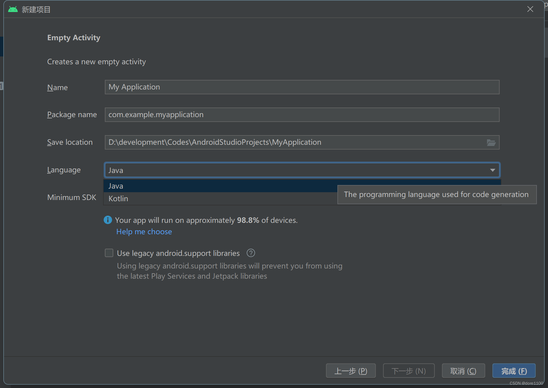 语言可以选择JAVA或Kotlin