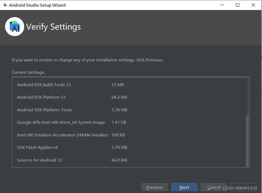 检查要安装的组件,更改Android SDK 的路径