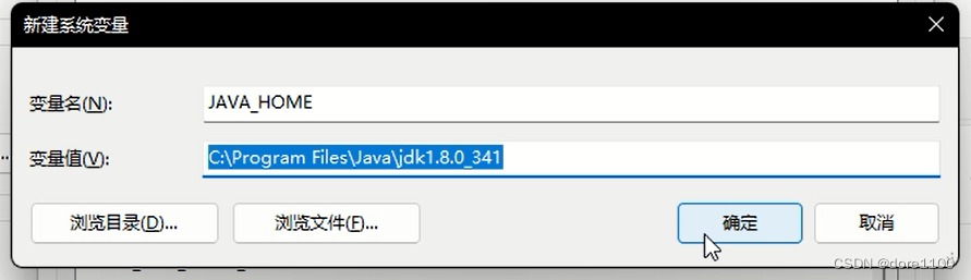 变量值:C:\Program Files\Java\jdk1.8.0_341(刚才下载jdk的路径)