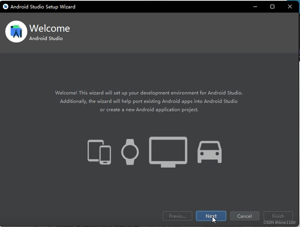 完成安装,启动Android studio