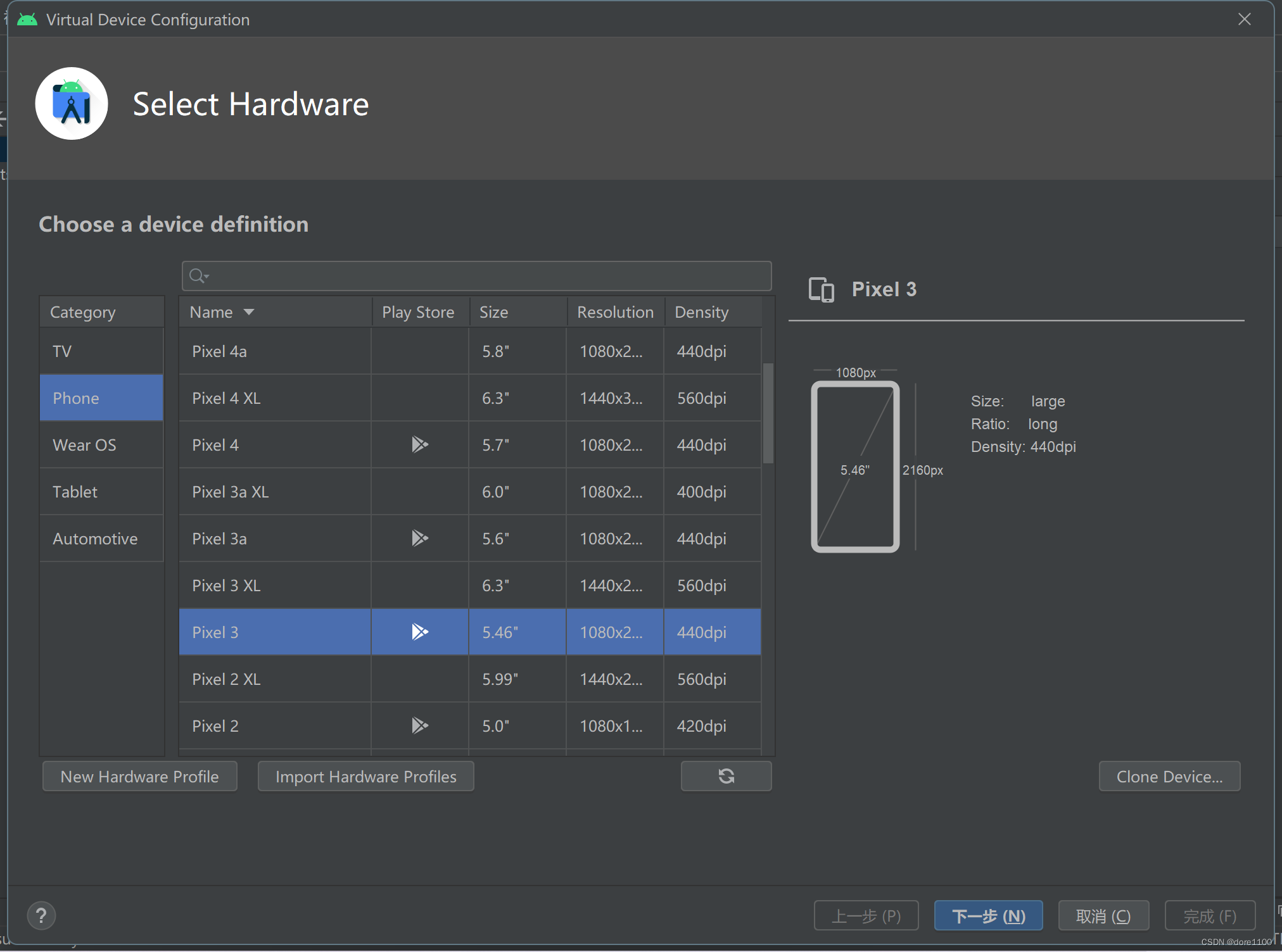 我这里选的是pixel3