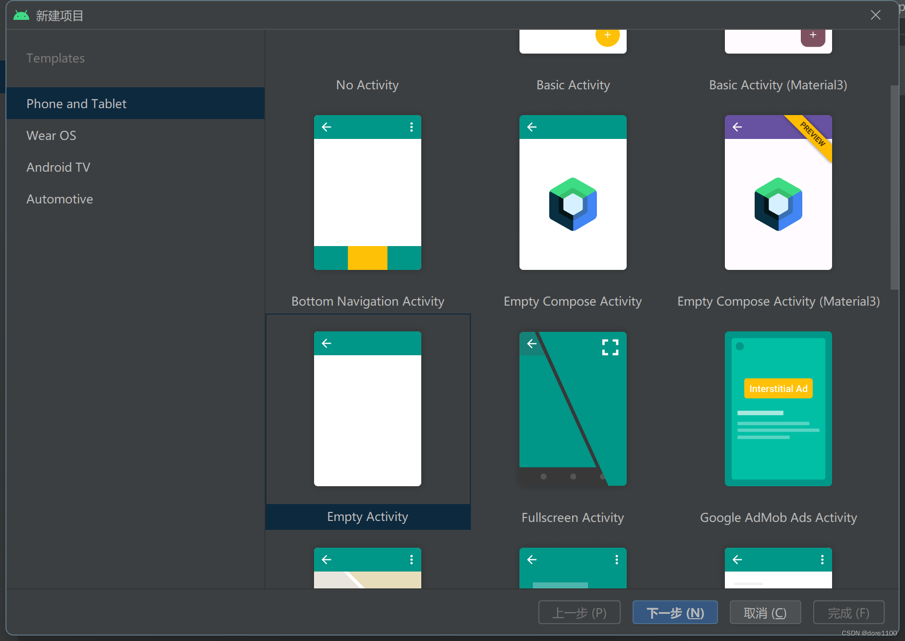 选择empty activity