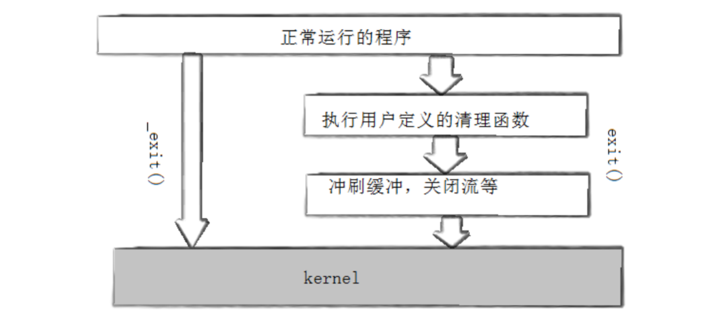exit退出进程也是常用的方法,exit可以在代码的任何地方退出进程,并在退出前做一堆准备工作: