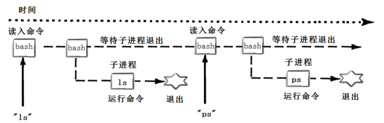 shell也就是命令行解释器,其运行原理就是:当有命令需要执行时,shell创建子进程,让子进程执行命令,而shell只需等待子进程退出即可。