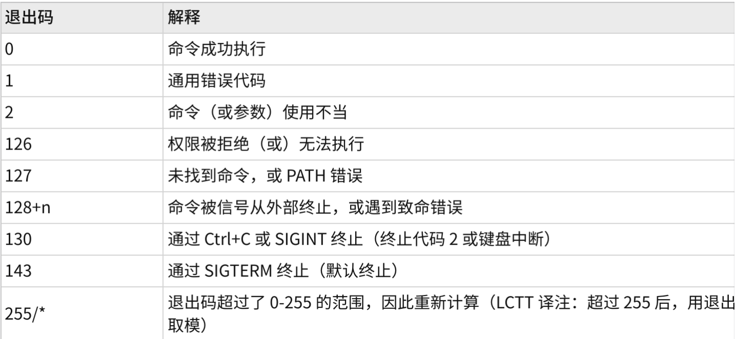ps:退出码都有对应的 字符串解释,帮助用户确定执行失败的原因。而这些退出码具体代表什么含义都是人为规定的,不同环境下相同退出码代表的执行失败原因可能不同。