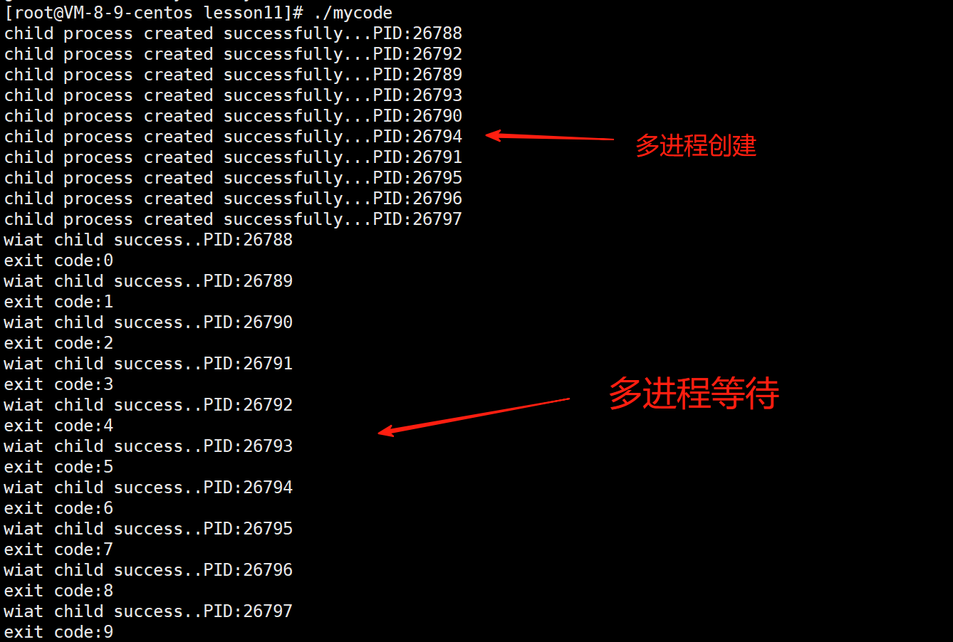 exit(i); //将子进程的退出码设置为该子进程PID在数组ids中的下标