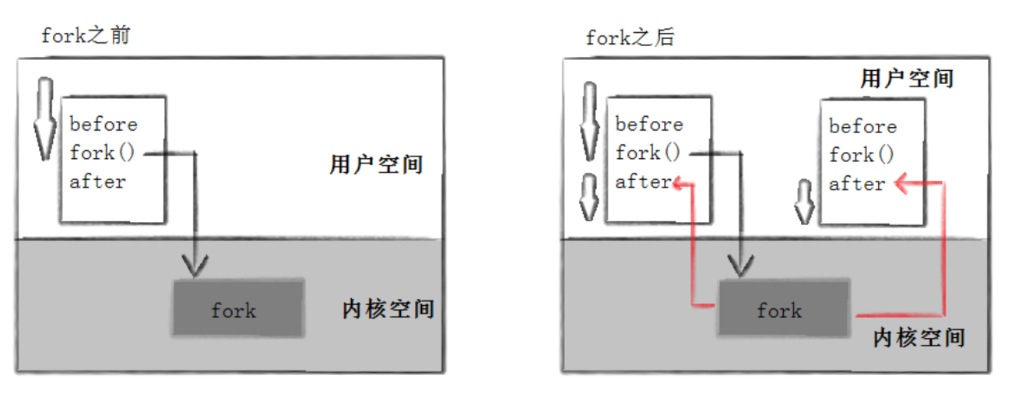 printf("After:pid is %d, fork return %d\n", getpid(), pid);