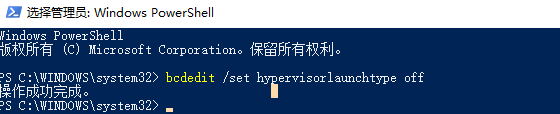 步骤二:通过命令关闭Hyper-V(控制面板关闭Hyper-V起不到决定性作用,要彻底关闭Hyper-V)