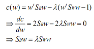 上式求极大值可以利用拉格朗日乘数法,不过需要限定一下分母的值,否则分子分母都变,怎么确定最好的w呢。可以令