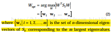 寻找矩阵W,使得Wt*St*W的行列式最大;因为St是满秩的显然,w为St的特征向量矩阵时,其行列式最大;