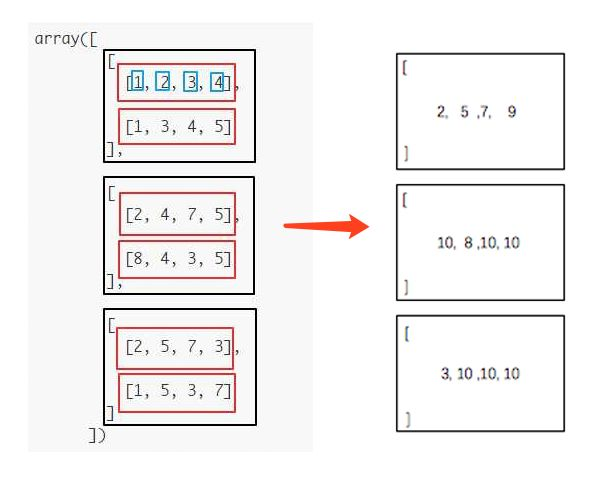 如果我们要计算np.sum(a, axis=1),在第一个黑色框框中,