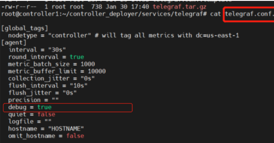 修改 telegraf.conf 配置文件中得 debug 为 true
