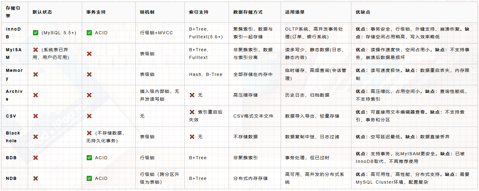 MySQL的数据存储不一定是基于磁盘的。虽然大多数情况下,MySQL使用InnoDB或MyISAM等存储引擎将数据存储在磁盘上(如.ibd或.MYD文件),但它也支持MEMORY存储引擎,允许将数据完全存储在内存中,从而获得极快的查询速度。使用MEMORY存储引擎时,数据仅存在于内存中,重启MySQL服务后数据会丢失,因此它适用于临时数据或缓存场景,而非持久化数据存储。