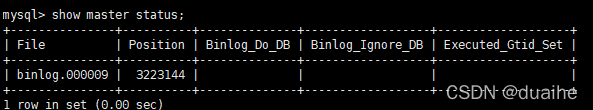 CHANGE MASTER TO MASTER_HOST='192.168.1.3',MASTER_PORT=3306,MASTER_USER='app2',MASTER_PASSWORD='root' ,MASTER_LOG_FILE='修改为图中的binlog.000009',MASTER_LOG_POS=Position;