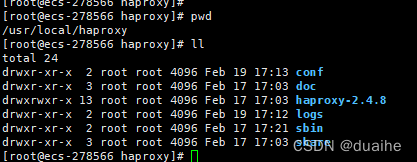 在/usr/local/haproxy下尽力logs,conf 如图下目录