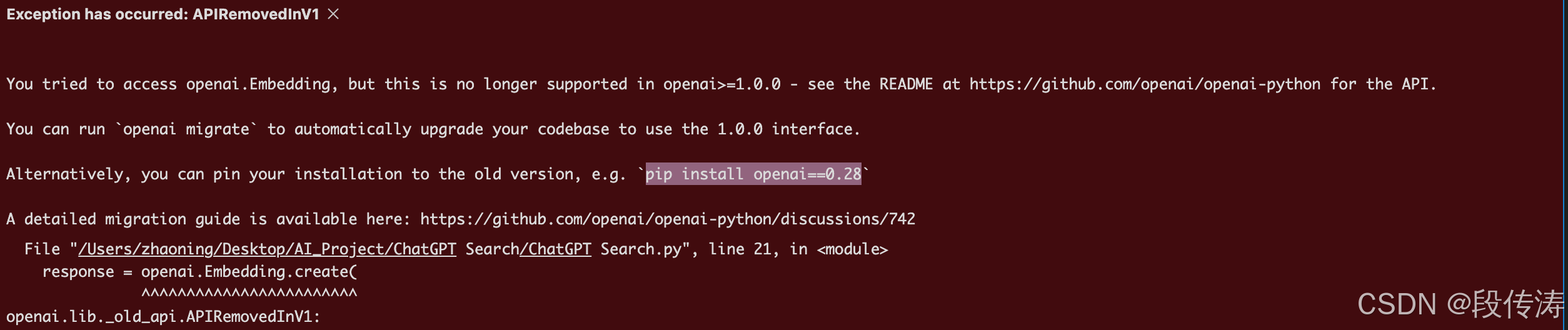 Notice, 在执行的过程中,如发现如下错误,请更新你的OpenAI 版本。