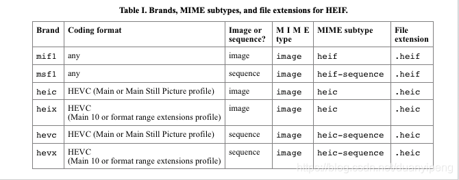 ftypheix、ftyphevc、ftyphevx、ftypmif1、ftypmsf1即为heif。