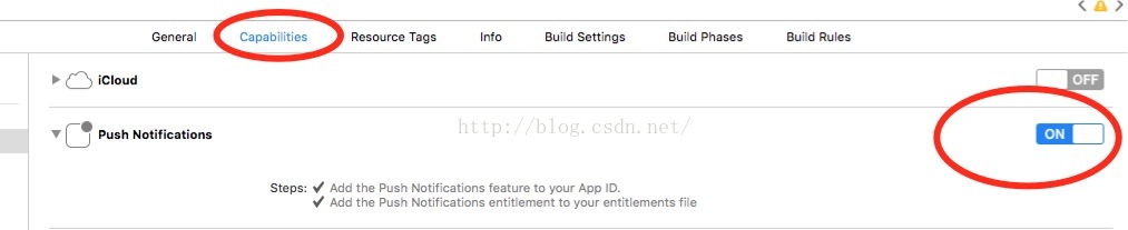 1.ios10推送获取不到devicetoken 注意在xcode8上要打开push Notifications (每个人的情况可能不一样,只是把我遇到的和解决办法说明下)