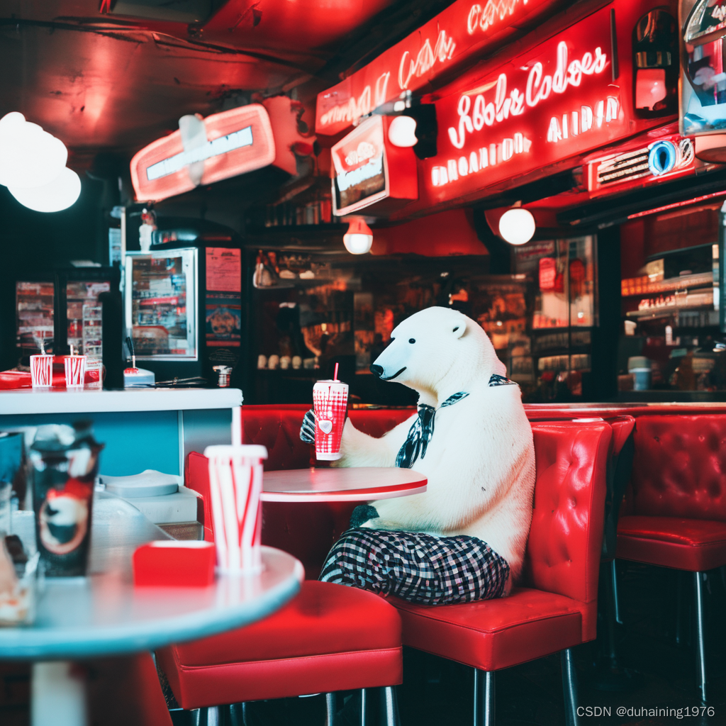 prompt="a polar bear sitting in a chair drinking a milkshake",