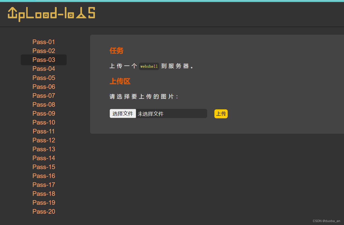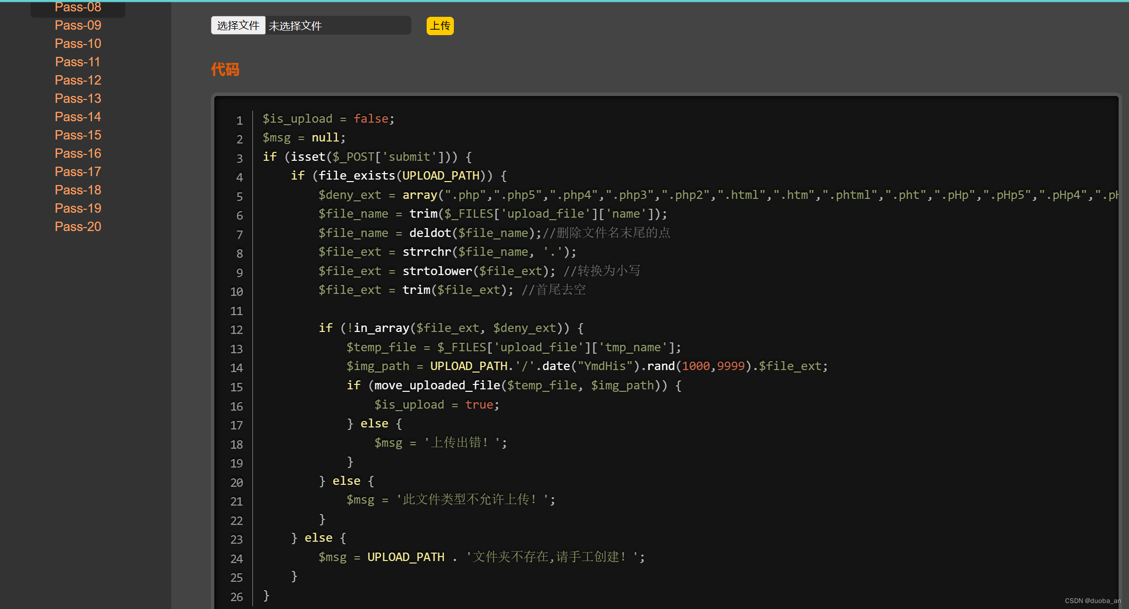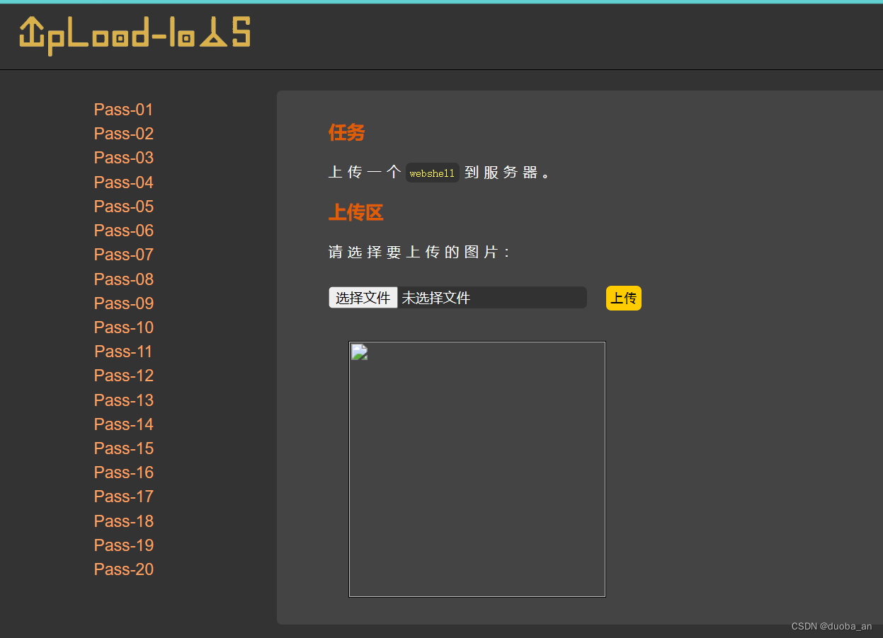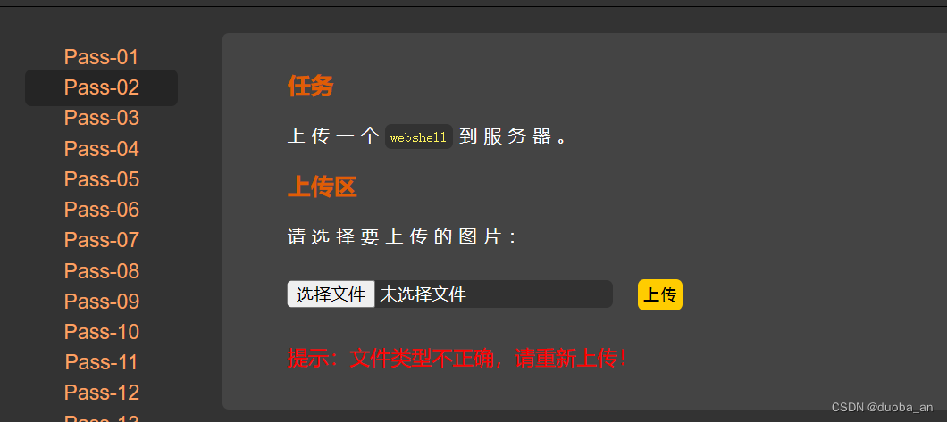通过源码发现,本关并未对结尾点进行检测。那么这里就可以通过在后缀加上点进行绕过,这里我使用的是之前大小写的文件,并未修改名称,所以不要太在意,并不是说使用大小写可以绕过。