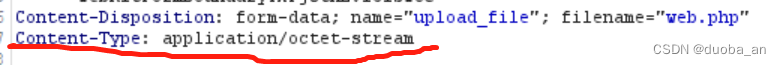 通过抓包可以发现这里的文件类型为默认参数,而我们这种情况上传文件肯定是上传不上去的,
