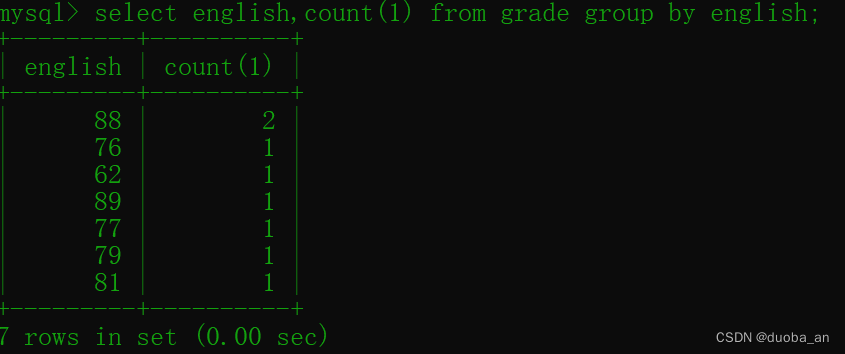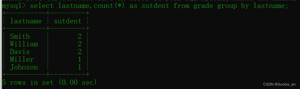 27、将grade表按照lastname字段值分组,并计算每个分组中的学生数