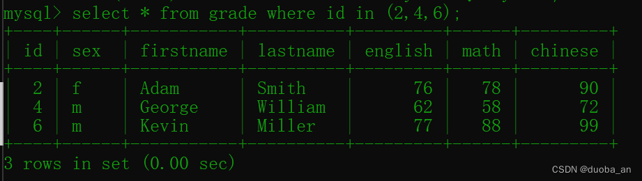 (6,'m','Kevin','Miller',77.0,88.0,99.0),