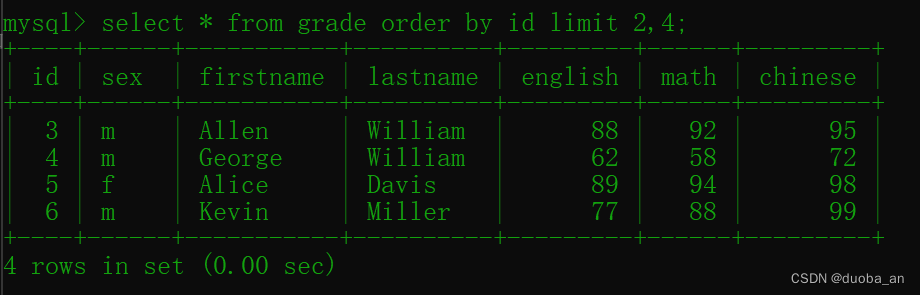 offset_start:第一个返回记录行的偏移量。默认为0.