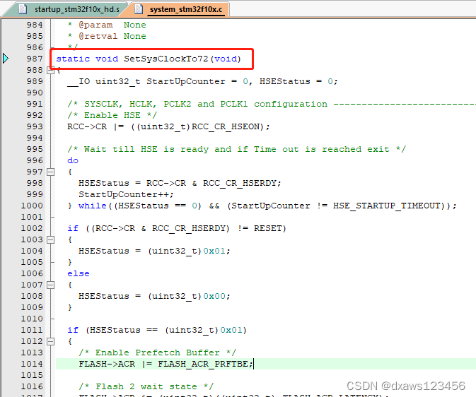 9:再次跳转到SetSysClockTo72() 函数,如下图: