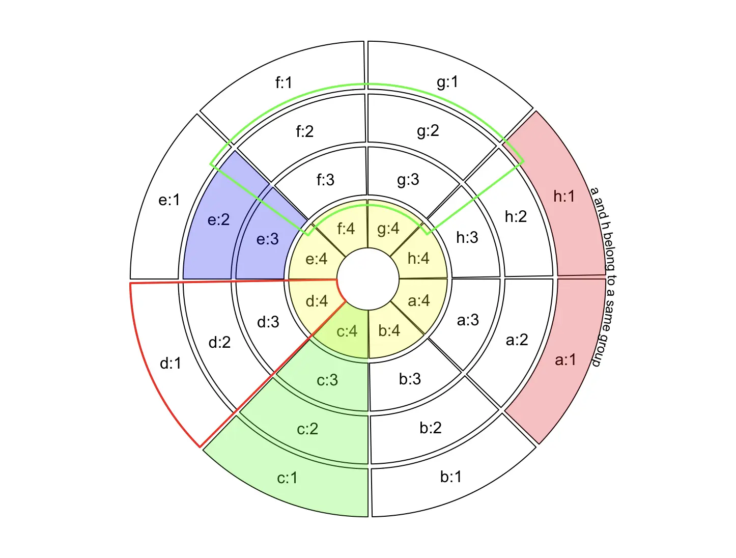 highlight.sector("d", col = NA, border = "red", lwd = 2)