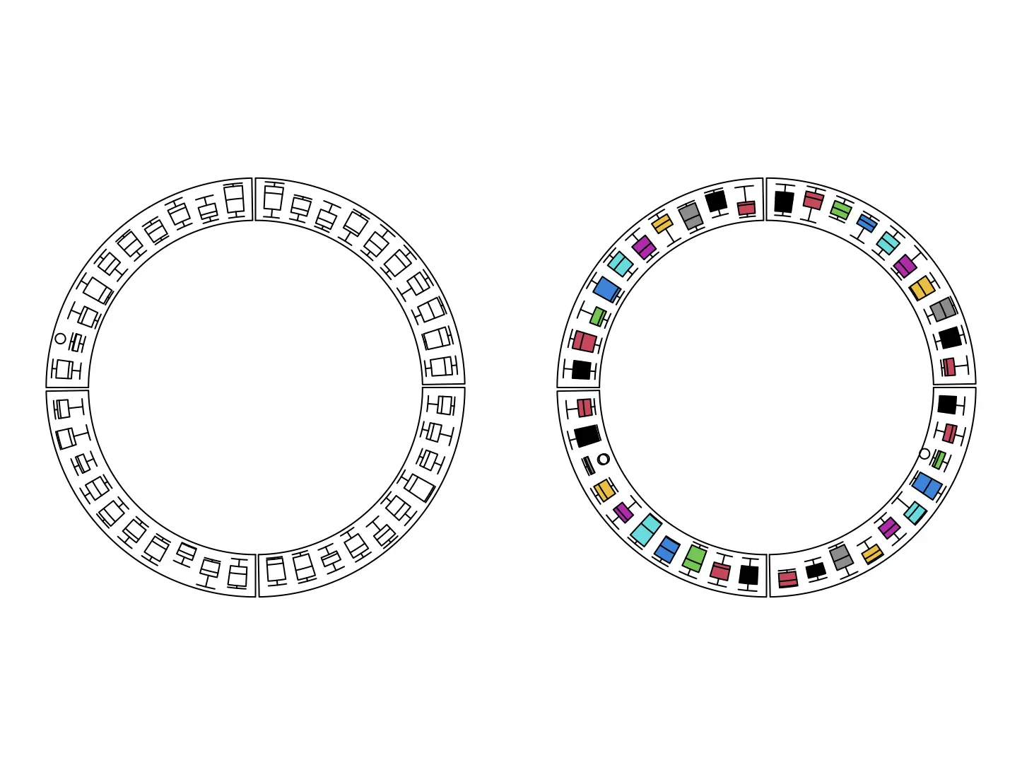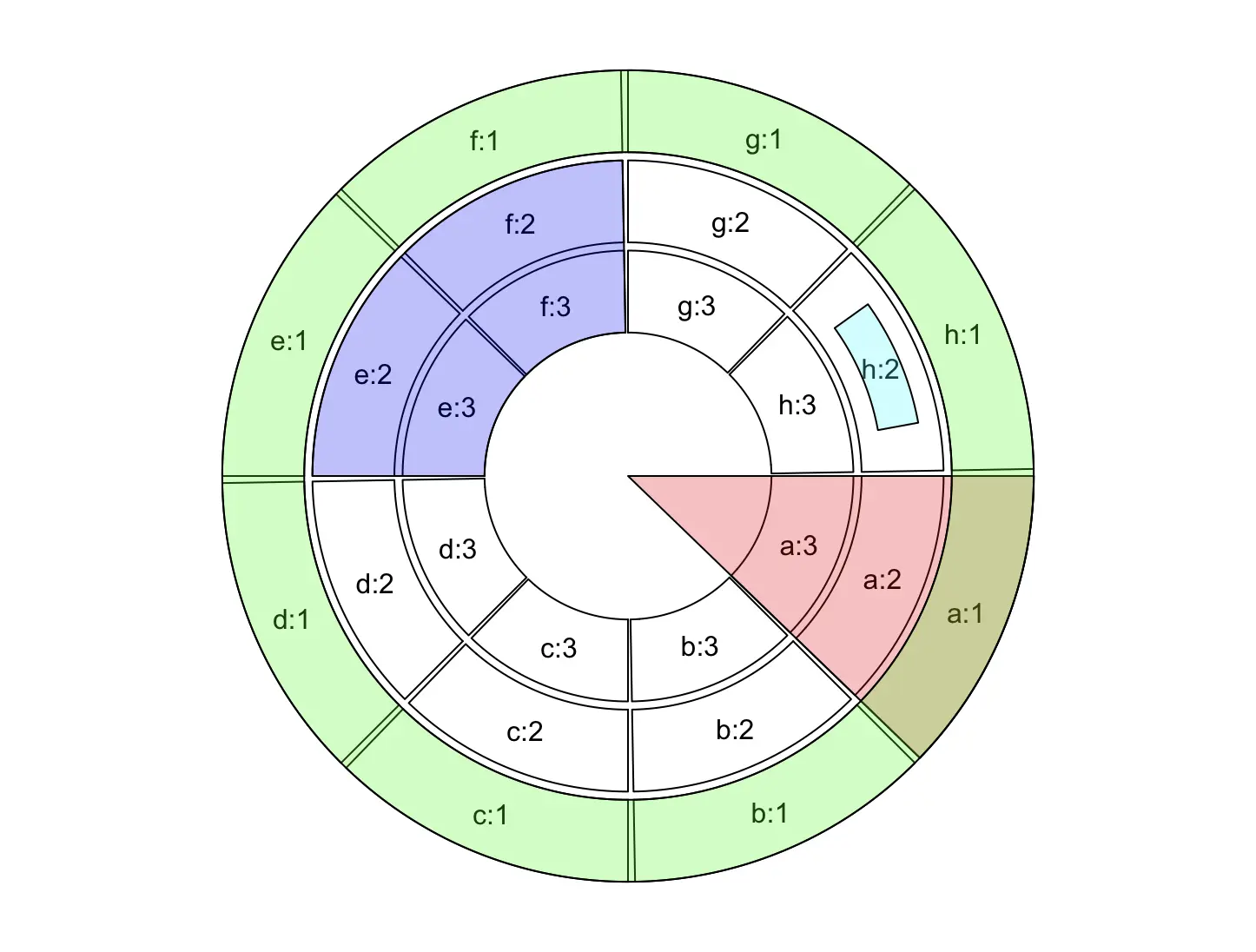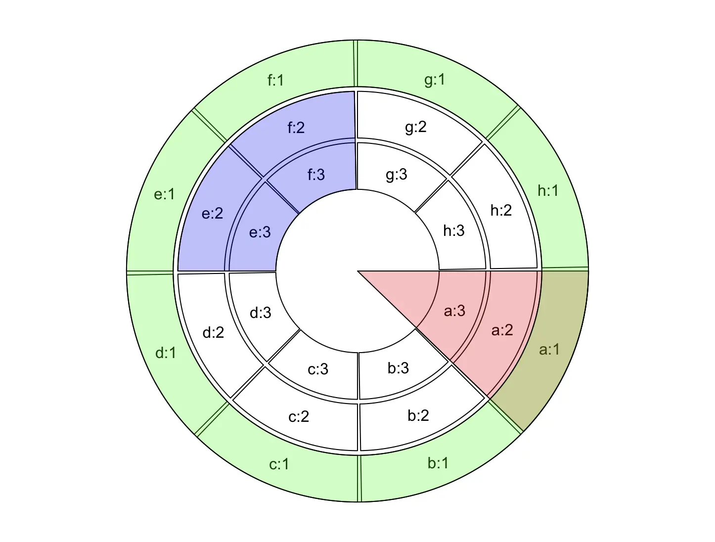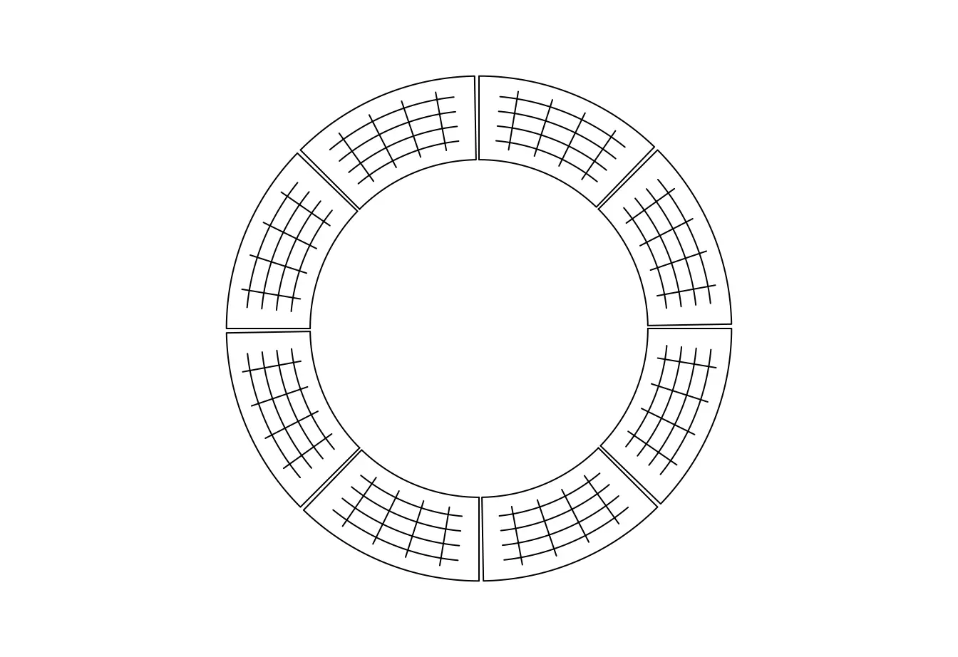 例如,我们绘制这样一个包含 8 个扇形和 3 个轨迹的圆形图
