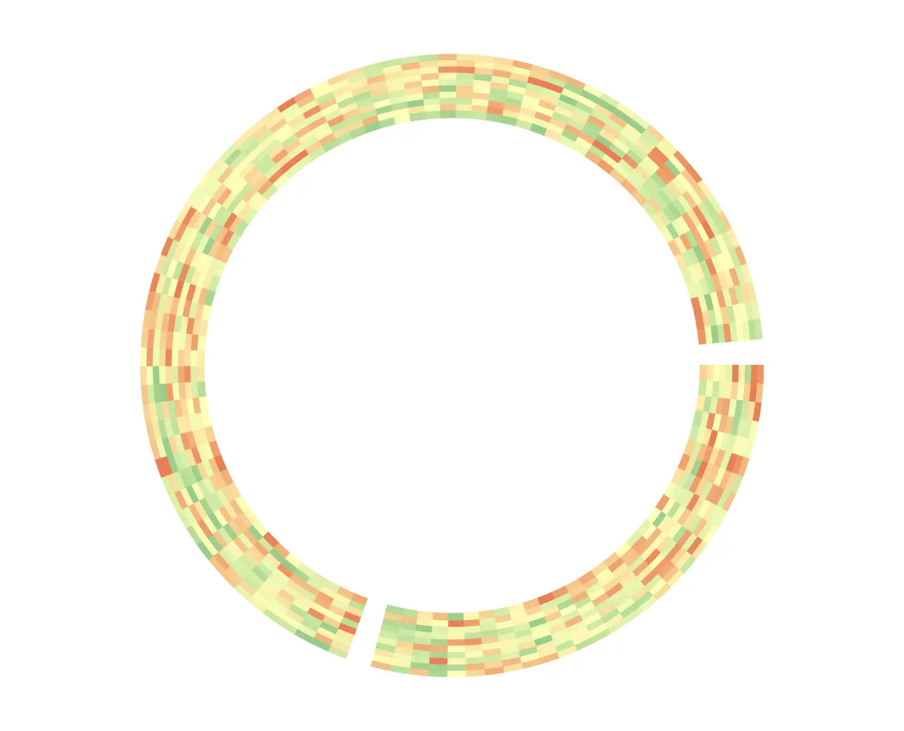 既然我们可以绘制圆形树状图,那么很容易想到,在最外层使用 circos.rect() 函数添加一圈热图,就变成了圆形热图。